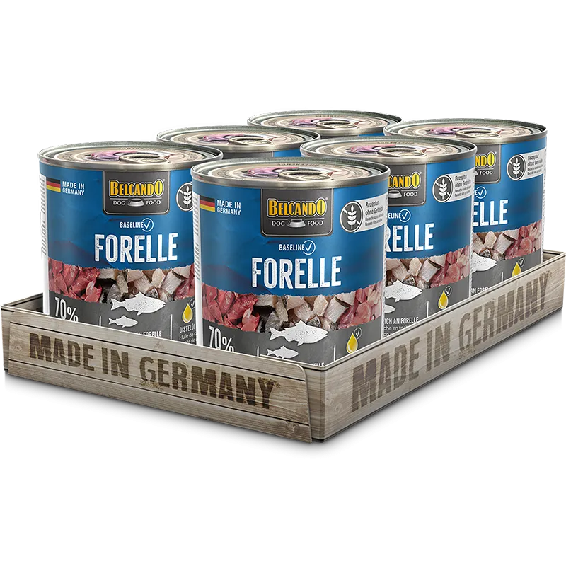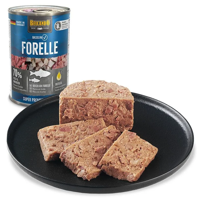 Alimentation humide chien : le menu gourmand avec de la truite fraîche est plein de précieuses vitamines et d’acides gras oméga-3.