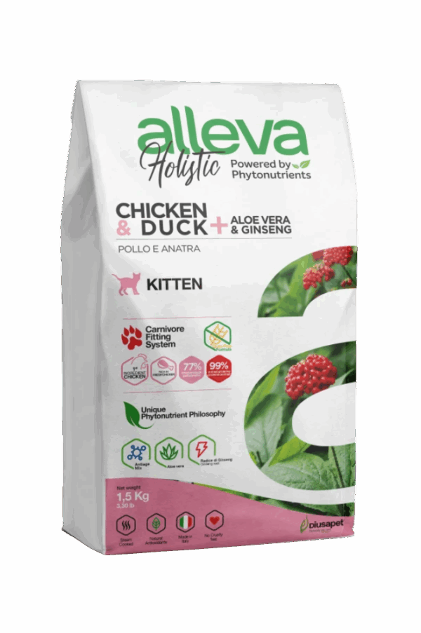 Croquettes pour chats holistiques – Chatons (poulet et canard) 1.5 KG