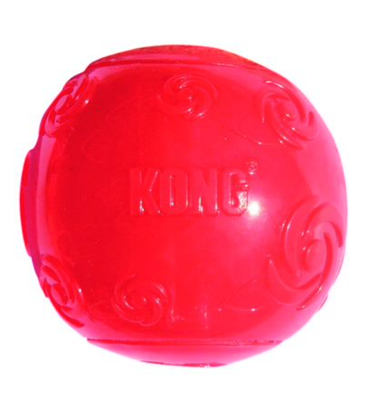 - La balle KONG Squeezz Ball comporte un sifflet incorporé