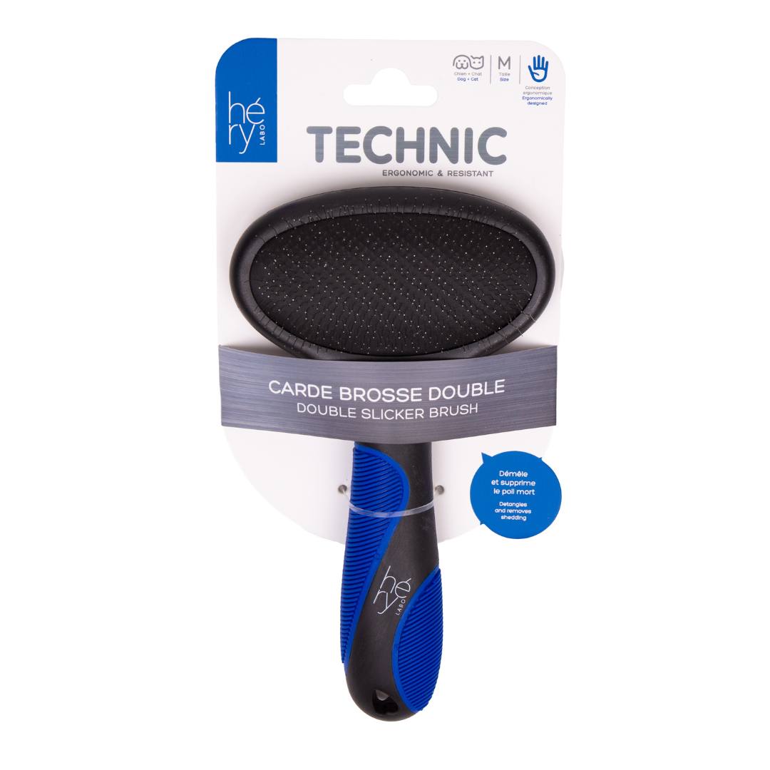 Démêle et supprime les poils morts. La Carde brosse double est spécialement étudiée pour le brossage des sous-poils du pelage.