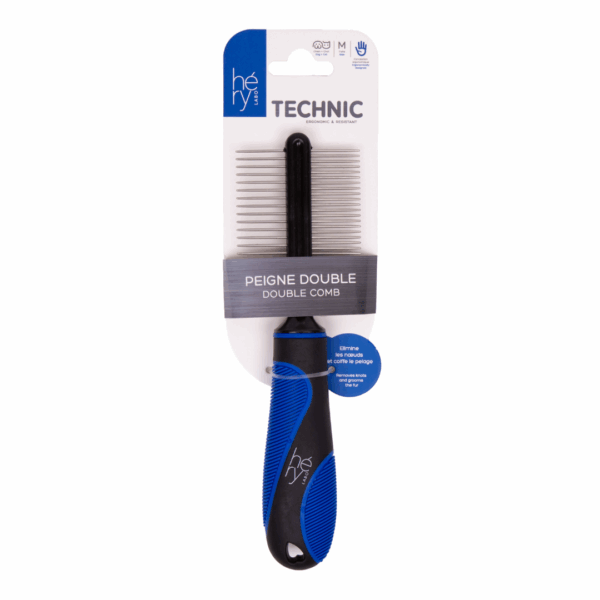 Le peigne double possède deux écartements. Un côté dents écartées pour dégrossir le démêlage et coiffer les fourrures épaisses avec sous-poils. Un côté dents serrées pour coiffer avec précision dans la longueur. 51 dents.
