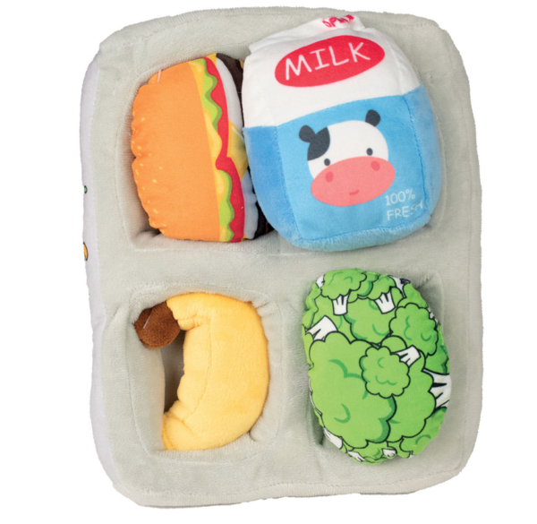 Voici un cadeau original pour votre toutou : une peluche plateau repas DOOGY composée de plusieurs jouets. Il s’en verra ravi. Jouet d’occupation & de fouille composé de 5 peluches. Activité d’enrichissement et de fouille idéale.