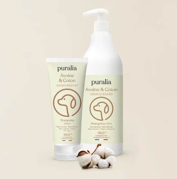 Offrez à votre chiot un moment de détente et de bien-être lors de son bain avec ce shampoing spécialement conçu pour lui. Notre formule unique, non irritante, nettoie en profondeur tout en respectant l’équilibre naturel de la peau. Ce shampoing associe l’avoine et le coton, reconnus pour leurs bienfaits apaisants et nourrissants, pour prendre soin de la peau sensible et du pelage délicat de votre chiot. Il procure une réelle sensation de confort et de douceur pendant le toilettage. Son parfum délicat laissera une odeur agréable sur le pelage de votre compagnon.